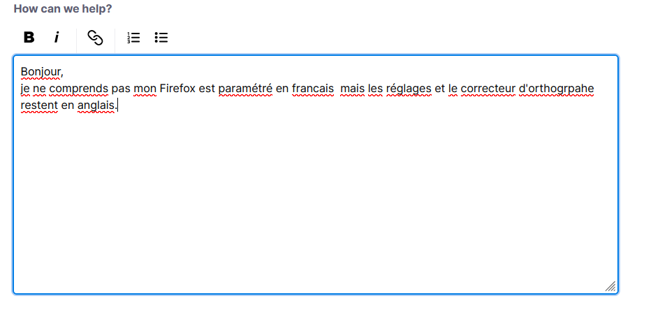 Bonjour, je ne comprends pas mon Firefox est paramétré en francais mais les réglages et le correcteur d'orthographe restent en anglais.