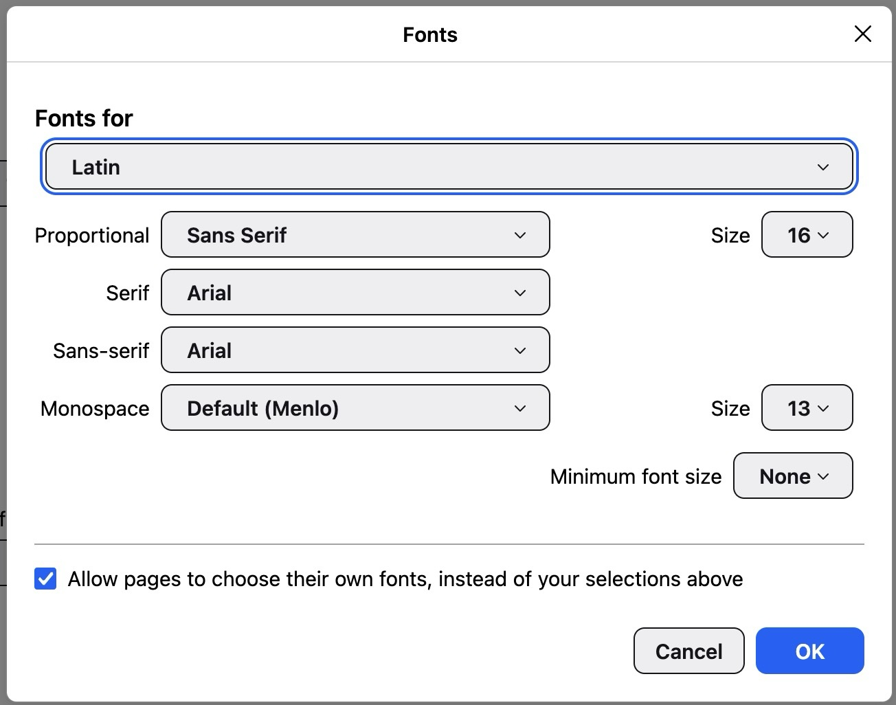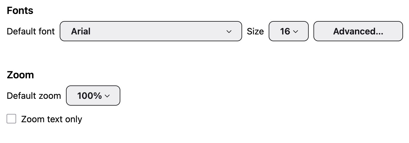 I have been to the Language and Appearance settings page, and even clicked on the Advanced tab. I have attached screenshots of my settings. What am I doing wrong? Why won't these pages display properly?