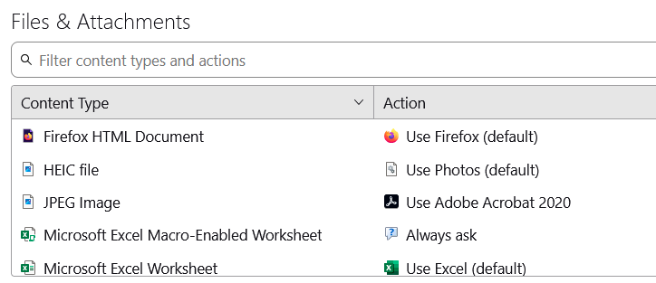 When checking back in the Thunderbird Content Type table, I found that Content Type JPG File has been changed from Always Ask to Use mspaint.exe as shown in the attached image. I'm not sure why the JPG File content was chosen but HEIC files now always open with Paint when clicked. Is this a bug? Should not the JPG File content type remain Always Ask and a "new" content type of HEIC be "added" with Action of Use mspaint.exe? I'm confused as to why this works as it does. Any recommendations? Thank you.