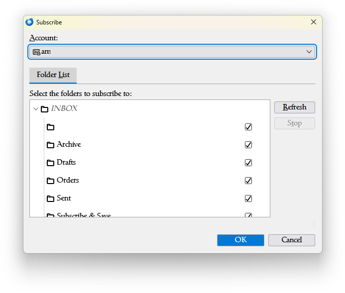 I have unsubscribed and resubscribed (I'm using IMAP BTW) to the folders and the folder list for subscription is incorrect too (see image #3, _SUBSCRIBE.png).