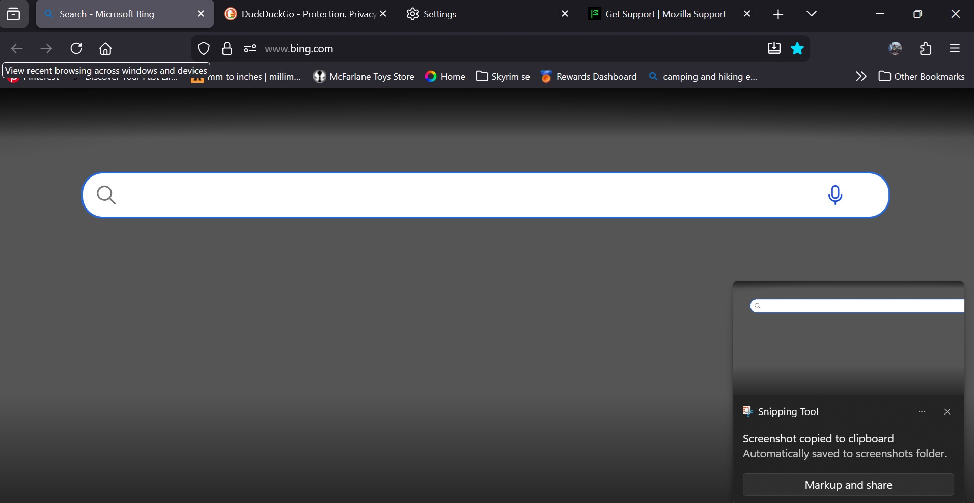 I have selected Microsoft Bing and DuckDuckGo tabs to be open when starting Firefox. With Microsoft Bing as the primary. However, Bing only displays a gray screen with a search bar, but doesn't work. I am using Windows 11.