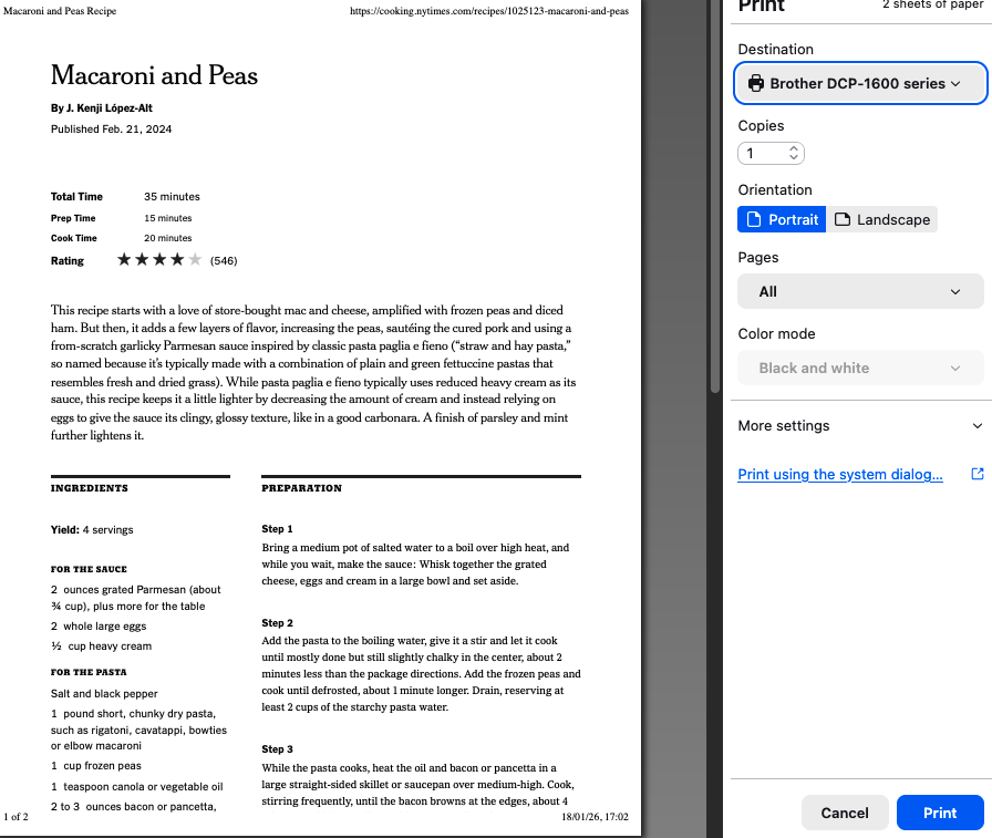 Interesting... Post a screenshot and let us see what options you're seeing. I'll go see what I get when printing from my old mac running 10.13.6. Here is what I get on linux when printing this page as a test. see screenshot