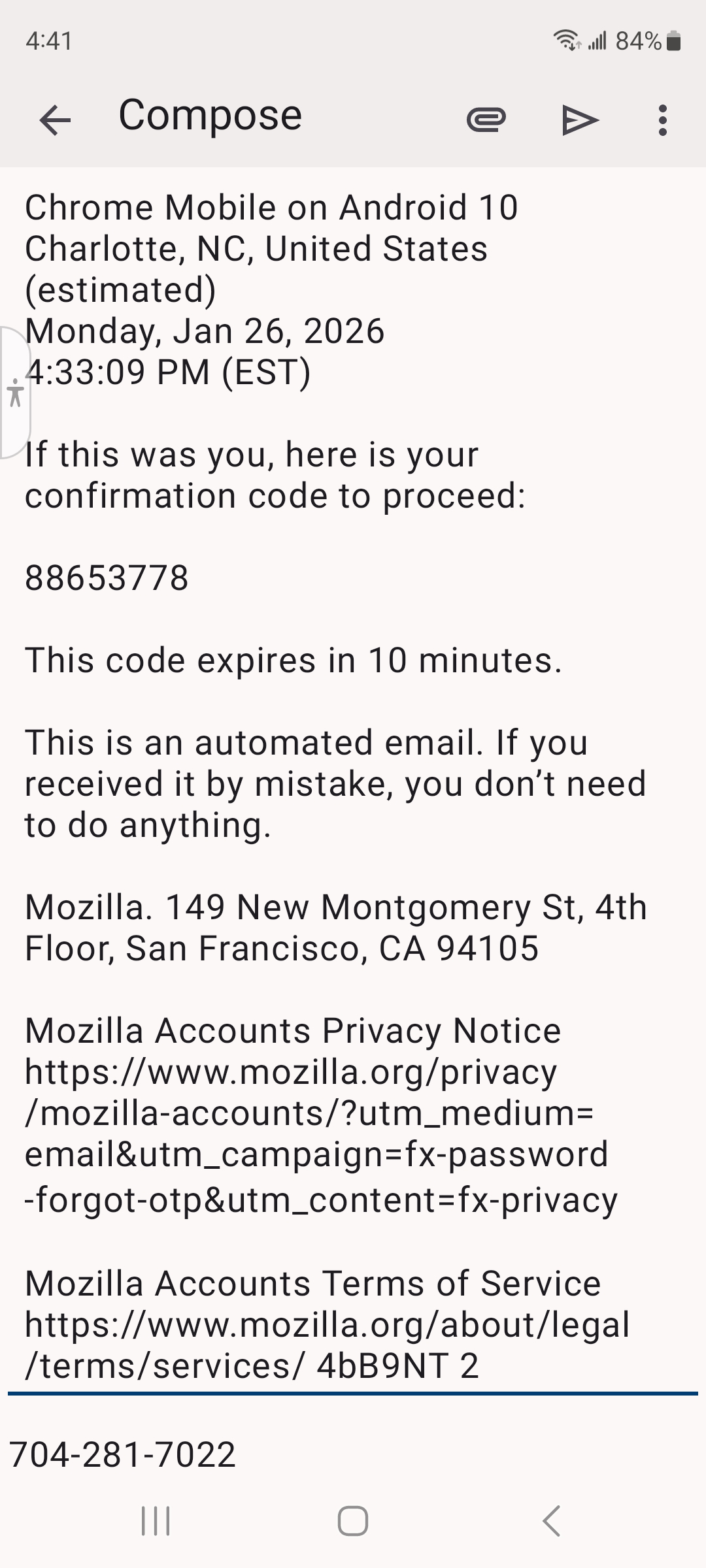 Chrome Mobile on Android 10 Charlotte, NC, United States (estimated) Monday, Jan 26, 2026 4:33:09 PM (EST)