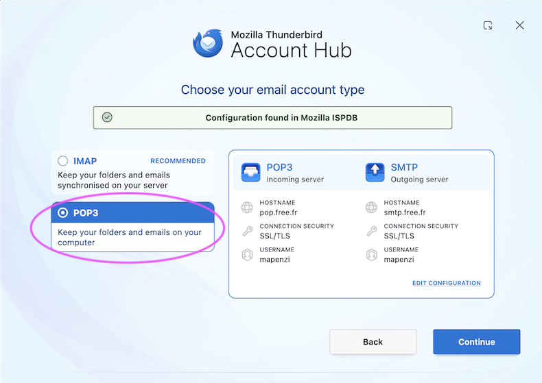 If it was an error and you prefer to go back to POP, we can do this rather easily by setting up your account again, this time as a POP account, and then we will link the new account with the "pop.gmail.com" account folder in Mail in your actual profile (details later).