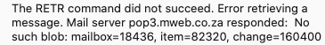 Receiving thunderbird error message shown on the attachment when trying to download mail.