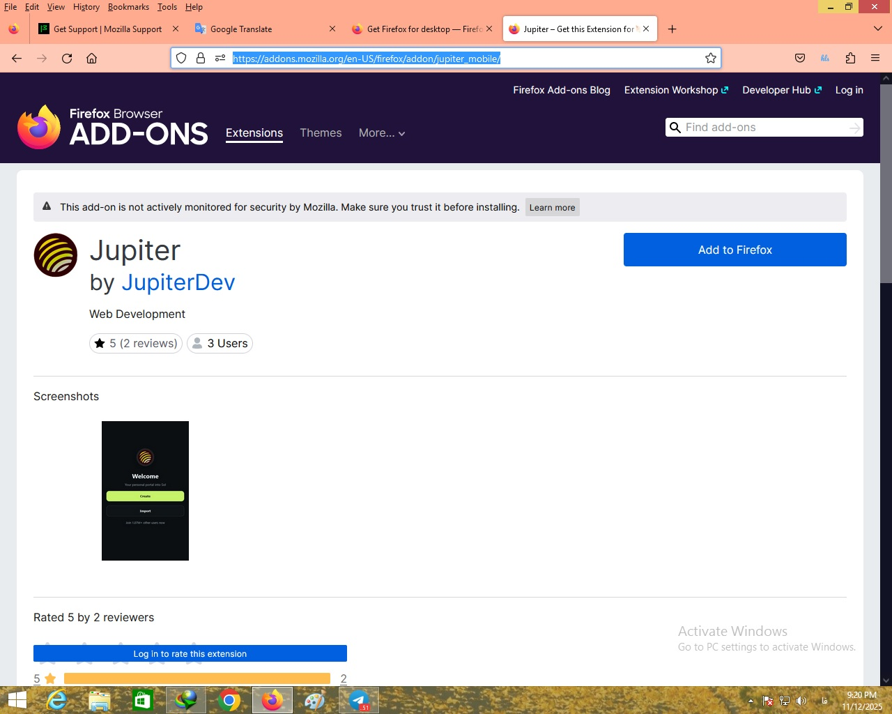 Hello, This extension is a scam, it stole my cryptocurrency account balance today after installing. Please check. https://addons.mozilla.org/en-US/firefox/addon/jupiter_mobile/