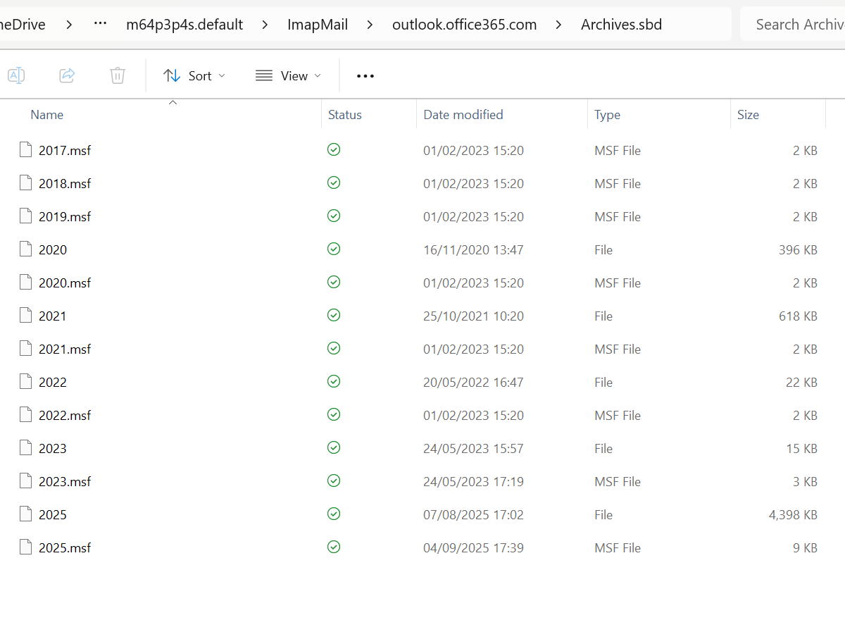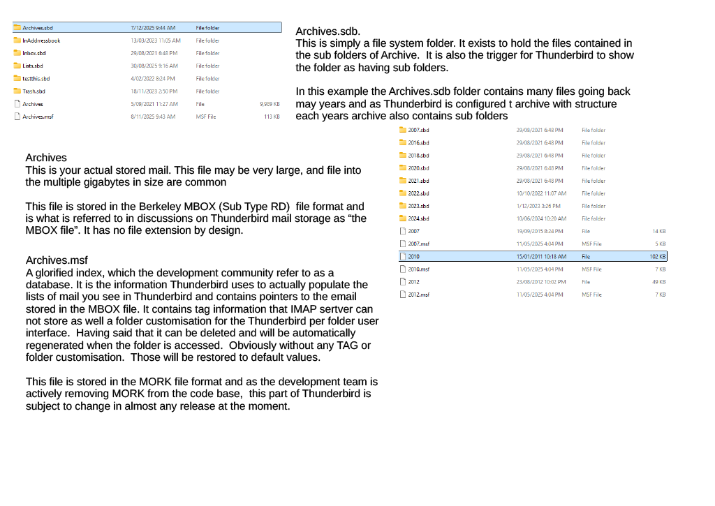 Hi Matt - just to highlight (I just found out in answering to Mapenzi )when I go to ImapMail (C:\Users\...\Thunderbird\Profiles\m64p3p4s.default) I just now see an Archives.sbd folder ... but it's empty!!!! see screenshot!