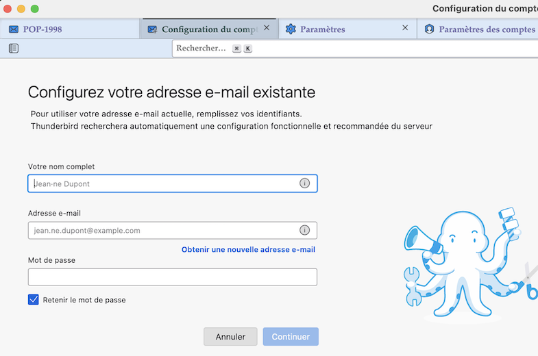 comment récupérer mon compte Thunderbird ?