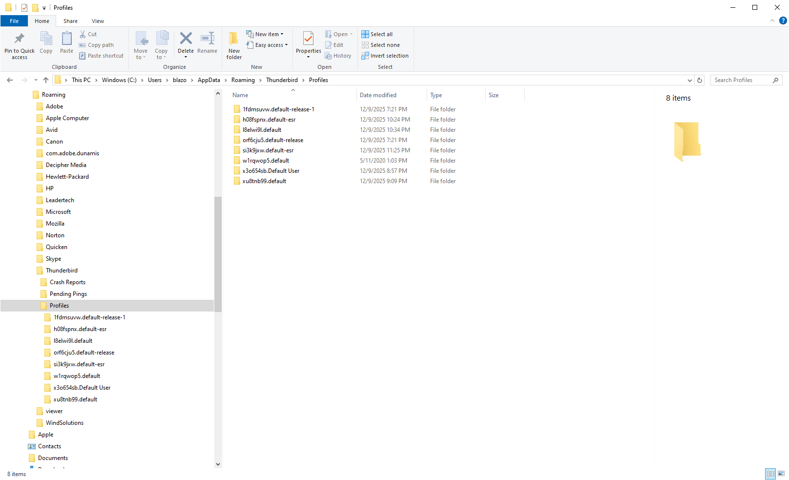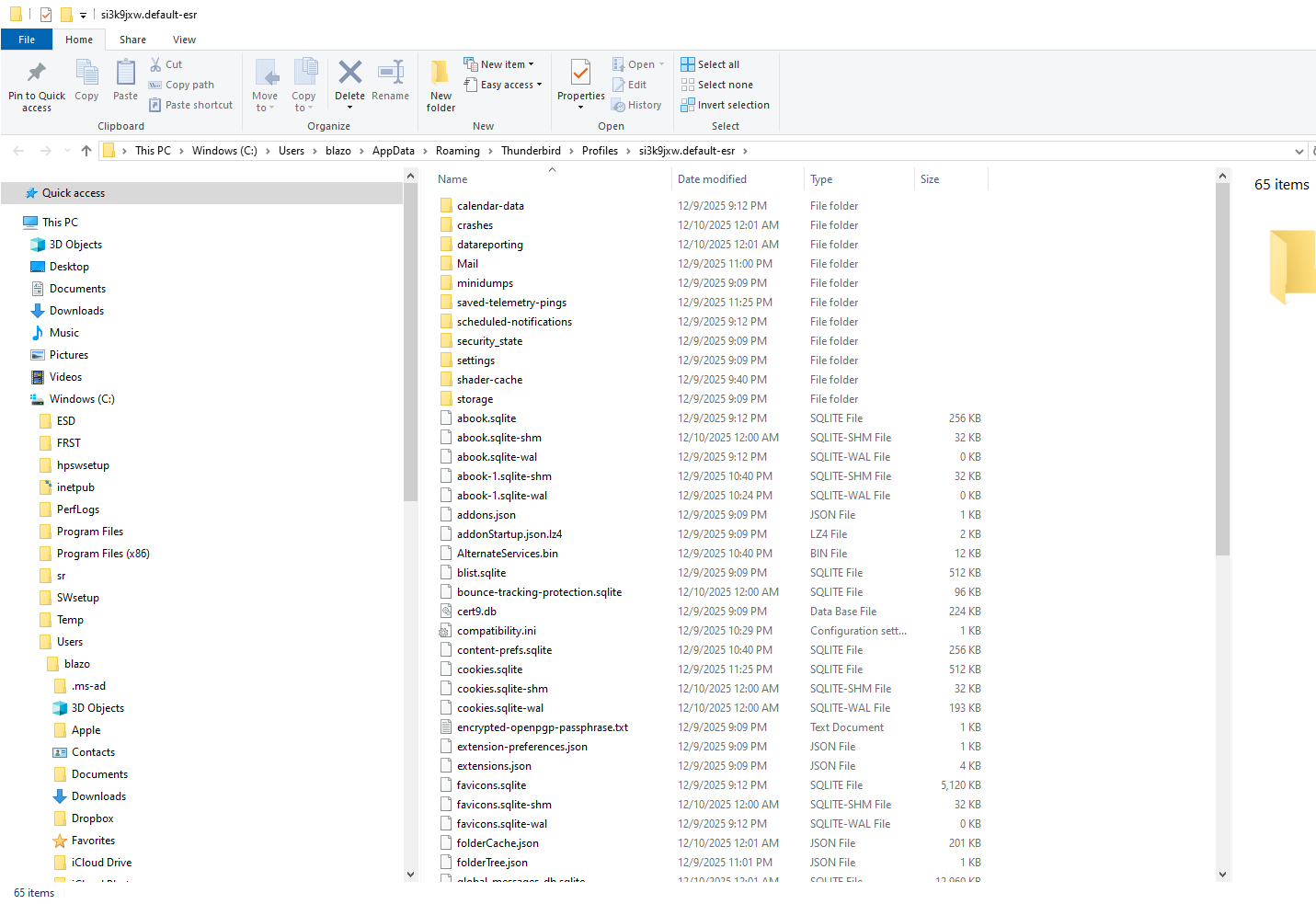 - Thunderbird's Troubleshooting Info "Profile Folder" path.