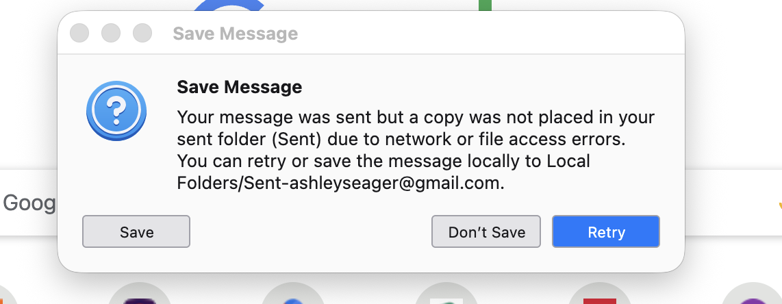 Hi, my Gmail account on Tbird is failing to copy sent emails to the sent box. The email hangs with "connecting to Imap Gmail" and then "your email was sent but a copy could not be placed in your sent box". I have re-downloaded Tbird, deleted and re-connected to Gmail but the problem persists. I have tried the fixes mentioned on this forum in 2024 (e.g. changing the destination folder as suggested, changing threads to "all") but nothing seems to work. Help!!