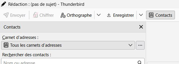 Bonjour, je pratique THUNDERBIRD depuis de très nombreuses années et j'en suis très satisfait. D'ailleurs j'ai contribué à des donations au cours de l'année précédente. Je viens de constater tout récemment plusieurs choses qui me gênent : 1) je ne vois plus apparaître la commande "insérer" pour insérer une image dans un texte 2) quand j'enregistre un message pour le sauvegarder je ne vois que le texte du message, mais plus les entêtes (adresses e-mail, date, etc.). Pouvez-vous me donner des explications s'il vous plaît ? Merci par avance. Guy ROBIN guyrobinggl@gmail.com