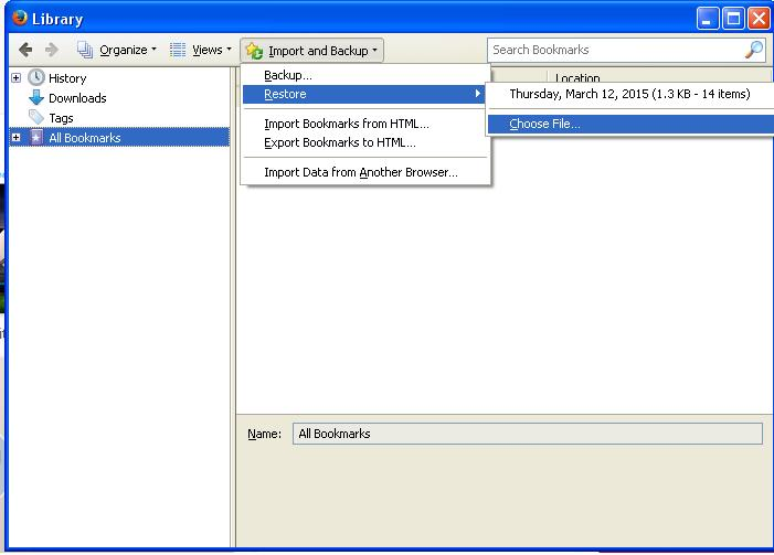 Tried everything but can't restore bookmarks backupfile after reinstalling windows