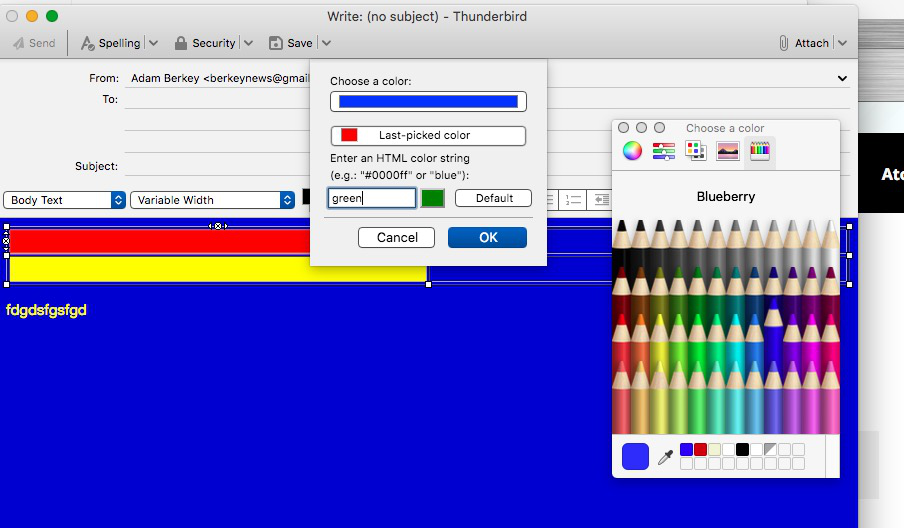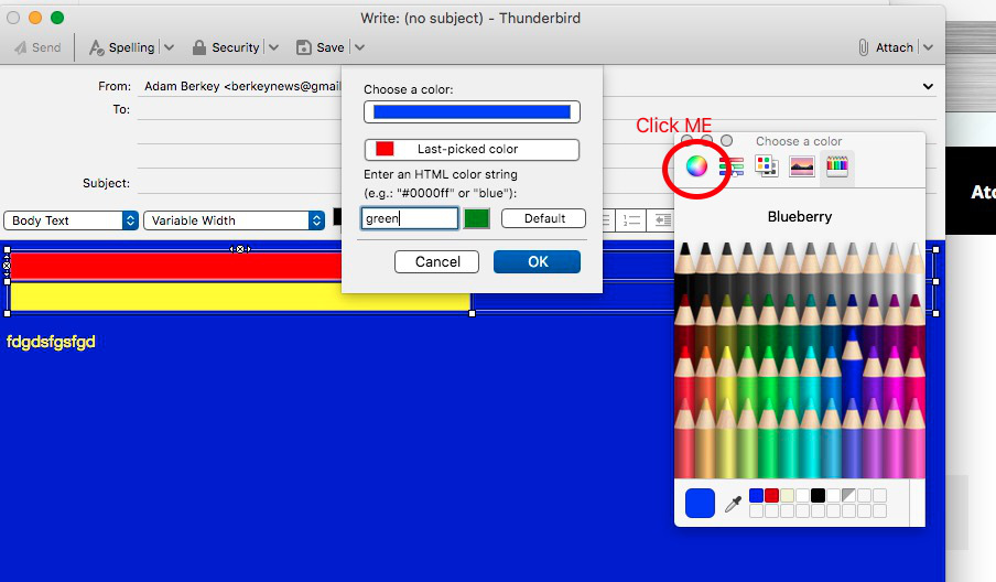 Does anyone else have a color picker that does not actually work for choosing color in Thunderbird.