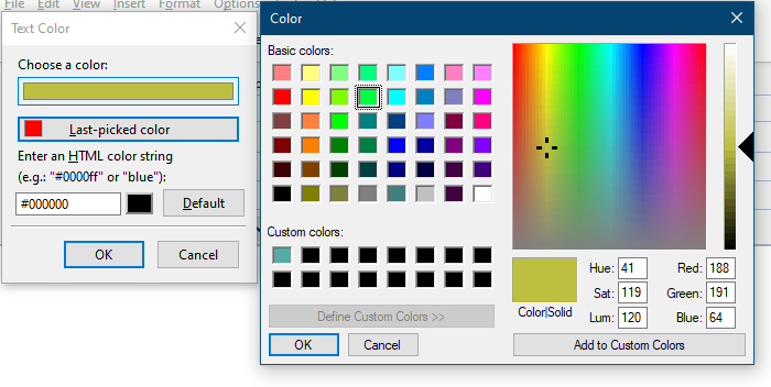 Click this one and problem is SOLVED. Then you get THIS Color Chooser (which even has an Eyedropper to sample screen colors EXACTLY):
