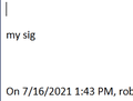 The first picture shows a signature inserted below my reply, but above the quote. The signature has two extra line breaks (second picture). If the 2 extra line breaks are removed, the signature looks like the 3rd picture.