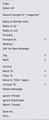 Whatever the user wants there! User customized context menus may be possible or are utilized elsewhere; I don't know. For starters, while composing a message, some common mac options would be swell: