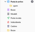 Come posta in uscita ho "bozze". Allego quanto richiesto. Però, andando nella sezione Aiuto, informazione per la risoluzione dei problemi, nelle informazioni base APRI CARTELLA e in Imapmail, ho cancellato tutti i trash e trash.msf dell'account e sembra aver che il problema sia risolto.
