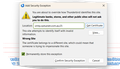 Get message "Add Security Exception" - You are about to override how TB identifies this site. What can I do???
