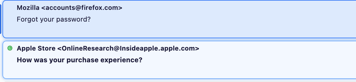Under 128 (see the attachment), I see one line containing all I need to know about an incoming message.