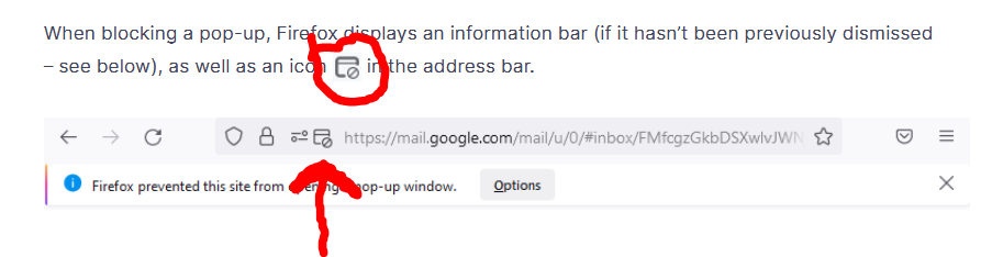 Here's a link about it and see screenshot. https://support.mozilla.org/en-US/kb/pop-blocker-settings-exceptions-troubleshooting