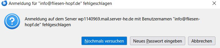 I also tried to minimize server connections, deleted cache, tested older and newer versions of mozilla thunderbird, tested other authentification modes which none others than the given in the reference are acccepted from mail server: wp1140969.mail.server-he.de, Port 143 - outgoing server: the same, Port 587 - worked since years. Only thing i could not try as to adapt Firewall rules of Windows Defender, because i can not find mozilla thunderbird in the shown app listing.