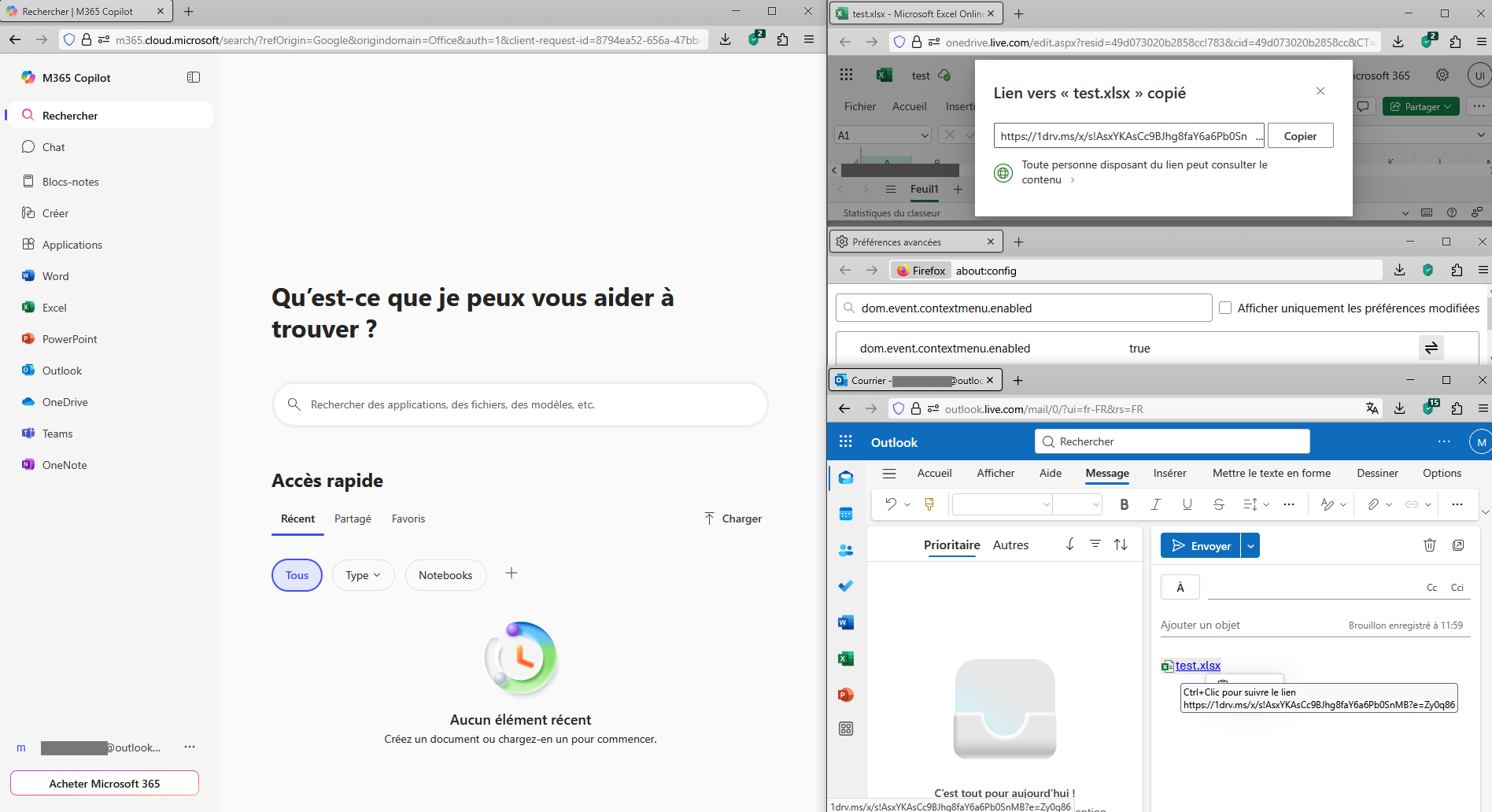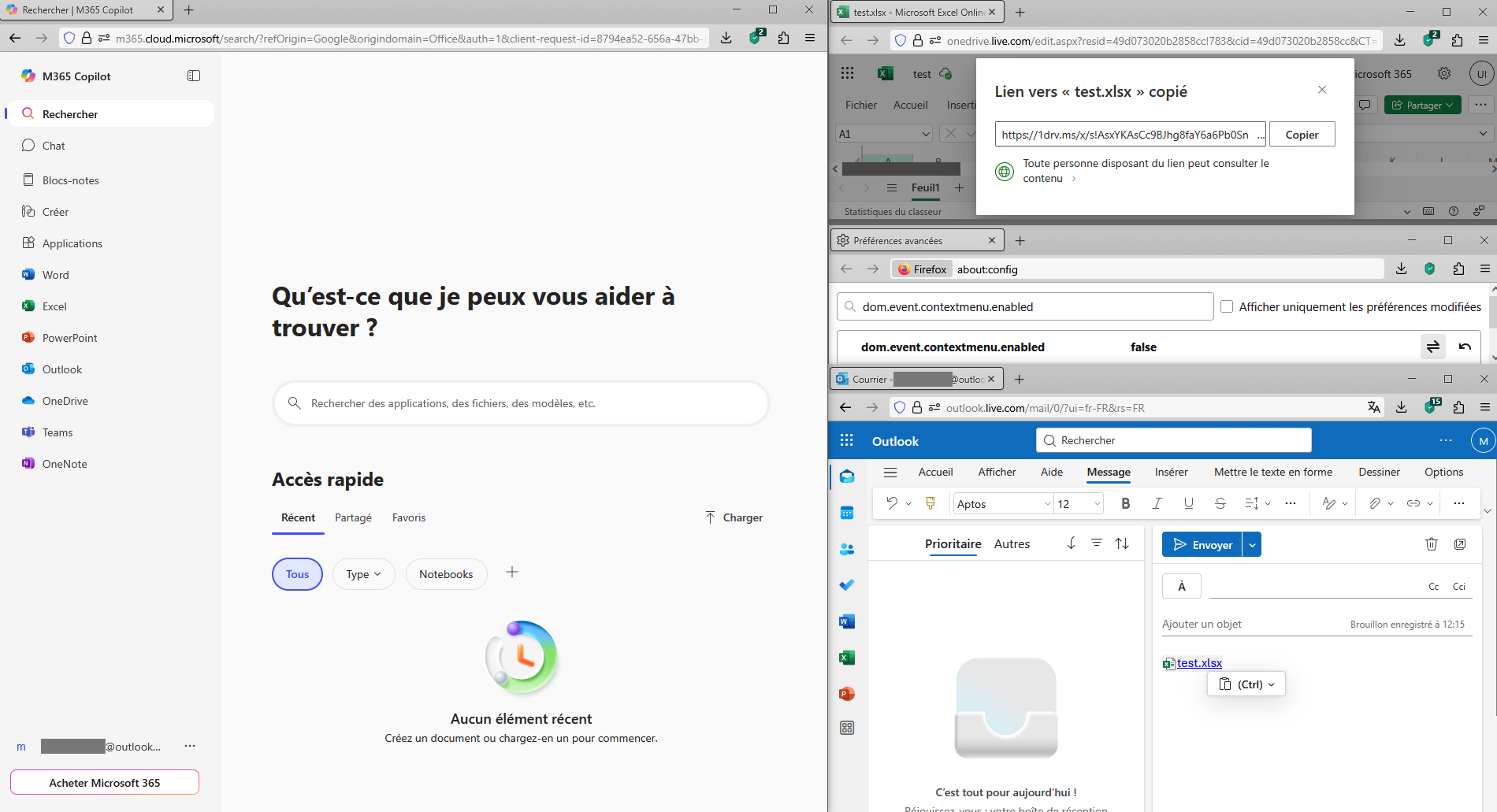 Hello, I have spent the last couple of hours reading through other questions and posts but nothing seeemd to work. If I try to copy a shared link in OneDrive or SharePoint on my desktop and then paste that link into Outlook Web App, the paste function does not work. The option is there, but the actual pasting does not materialise. CTRL+V also does not work. The only thing that does work is if I paste the link into another window first and then copy again, and the CTRL+V works. Right click and paste never works. I have tried this in a private window and in safe mode. I have also checked the clipboard settings in about:config to make sure they are not working against me. It works fine on Chrome. I made a quick Loom to demo the issue: https://www.loom.com/share/911ae68d614947aa9ea6beaba0d2f5b0?sid=2257b601-939b-4d95-90d8-bb2c95b1ed81 Firefox is up to date, as is Windows. It has been like this since I moved over from Chrome a few weeks ago. Is this a common issue or a 'me' problem? I have seen all the workarounds, but I am trying to understand why right-click, paste just doesnt work. Any suggestions are much appreciated.
