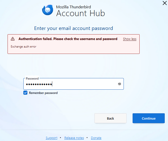 Hello Everyone. I have an issue when trying to add a second email address to Thunderbird; I get an error 'Authentication failed. Please check the username and password...Exchange auth error' but I am able to log in to my account online using these details. It is an Outlook.com email address. Any ideas?