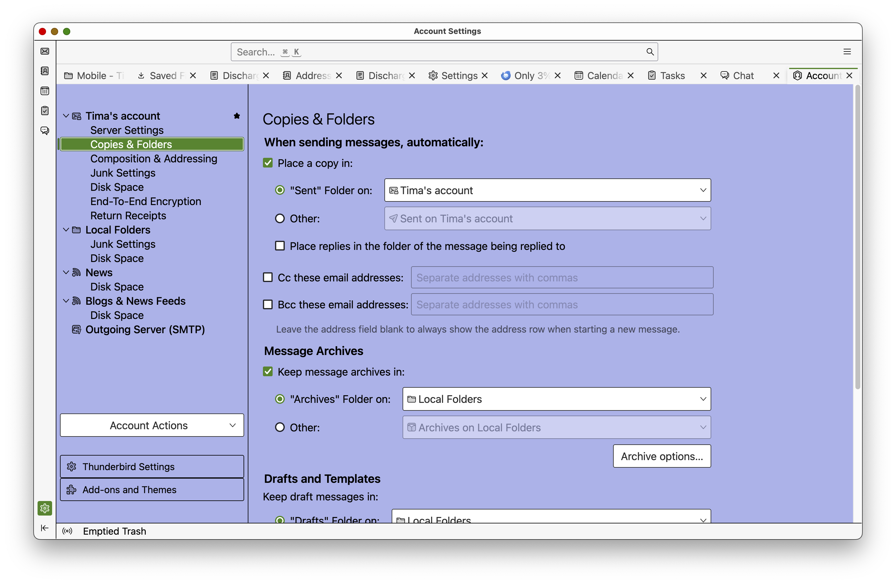 well all that is in settings folders...is where to put sent messages.. see below. Am I in the wrong place? Why would it do this all of a sudden? The Sequoia update ? But no one else is having the problem.