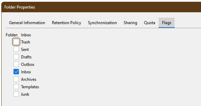 Thunderbird’s windows are very similar on Windows and Mac. Do you not have a row of tabs at the top of that window? Have you installed FolderFlags yet?