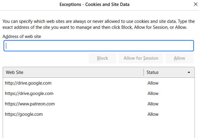 - These are the cookies I tried allowing and then not allowing and it didn't make a difference - Is this the correct place to try and do this? And have I put it in right?