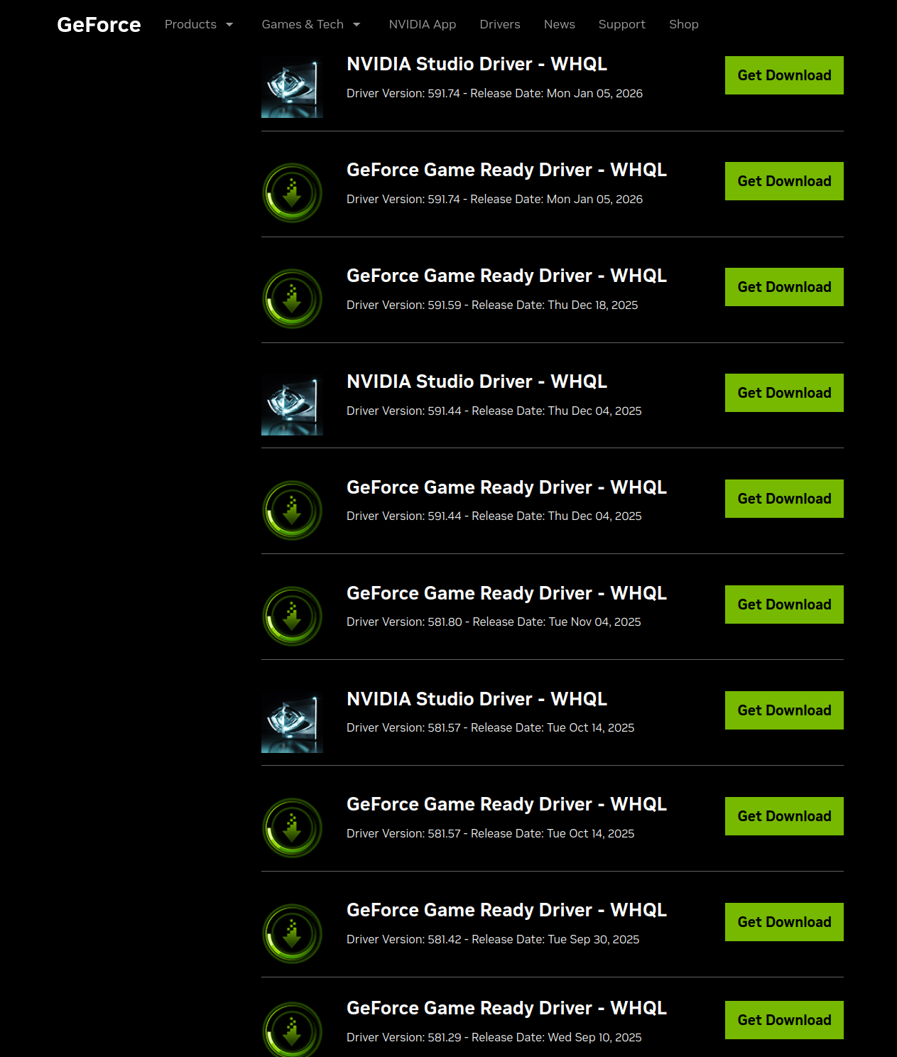 What driver were you originally on? see screenshot https://www.nvidia.com/en-us/geforce/drivers/