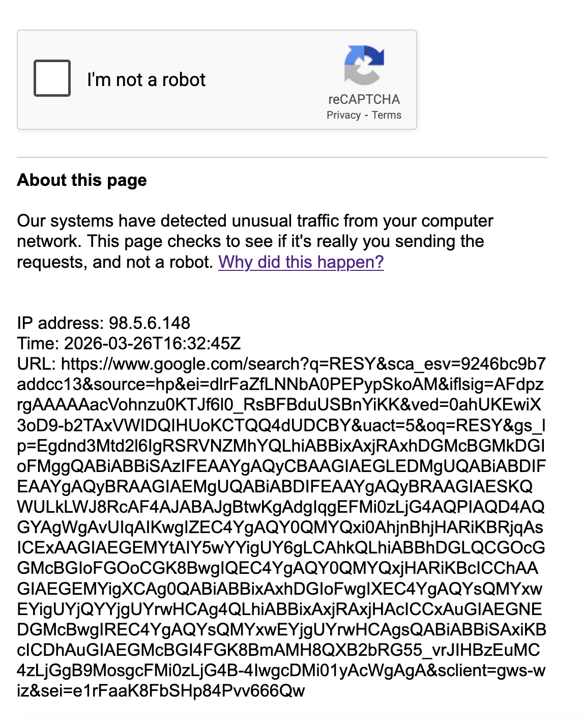 After resolving the captcha google is very slow.