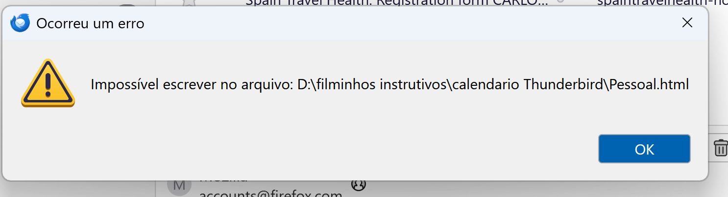 using thinderbird and export we could have calendar.ics and calendar.html now it is impossible to save in html. please help. It was so perfect the calendar saved in html, so we could print all the data perfectly Now the results says that error happen and olny ics type can work