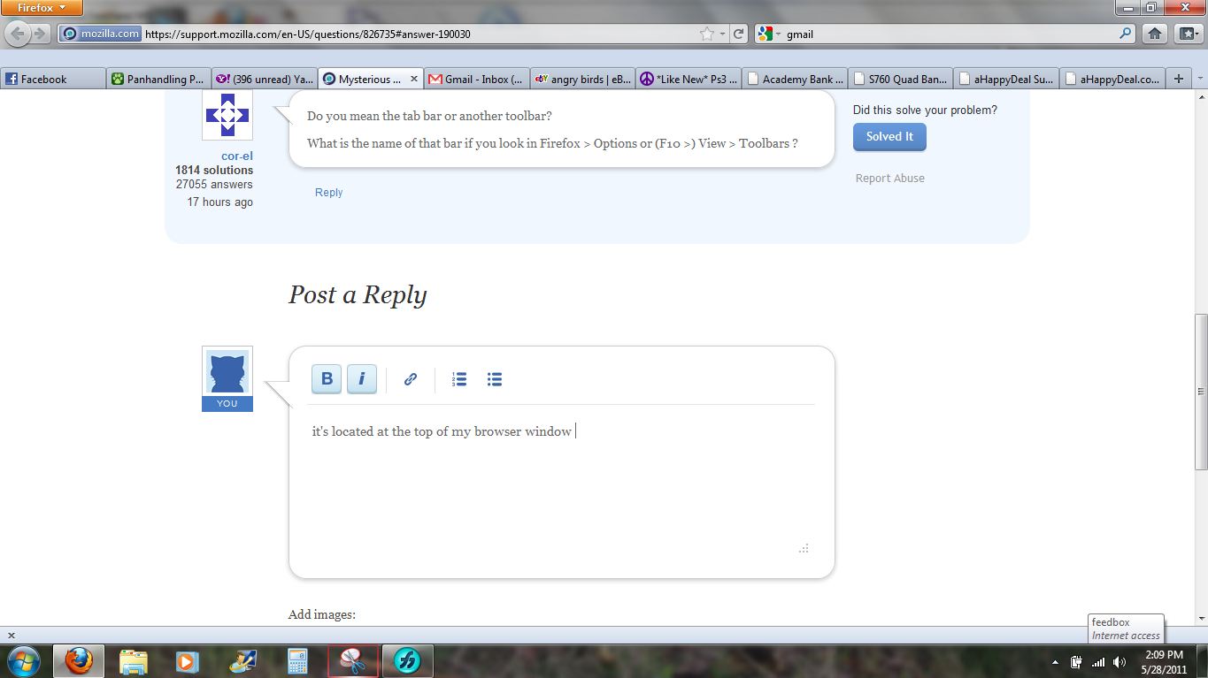 I have a Mysterious blank bar at the top of my screen it happened when I updated to the latest version and I can't get it to go away my web pages used to fit now I have to scroll down a little more than usual
