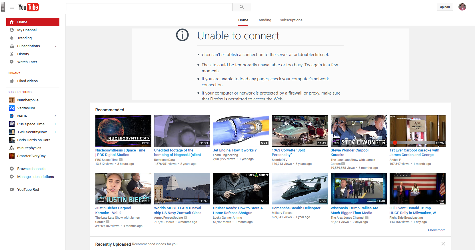Hi all. Back in December I had the same problem when Firefox upgraded to 43 now after upgrade to 45 it's back. My problem is, and I went though all the steps as before, I must have gotten lucky the last time because it didn't work this time. Could someone please help me fix this error message on YouTube, "Unable to Connect", Firefox can't establish a connection to the server at pubads.g.doubleclick.net? Thanks.