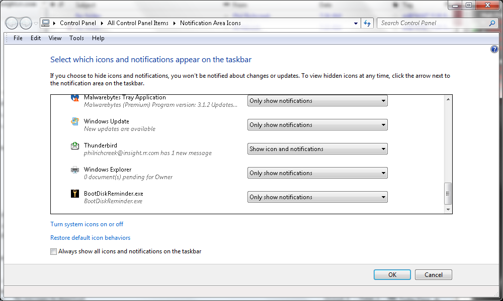windows taskbar notifications do not "take"