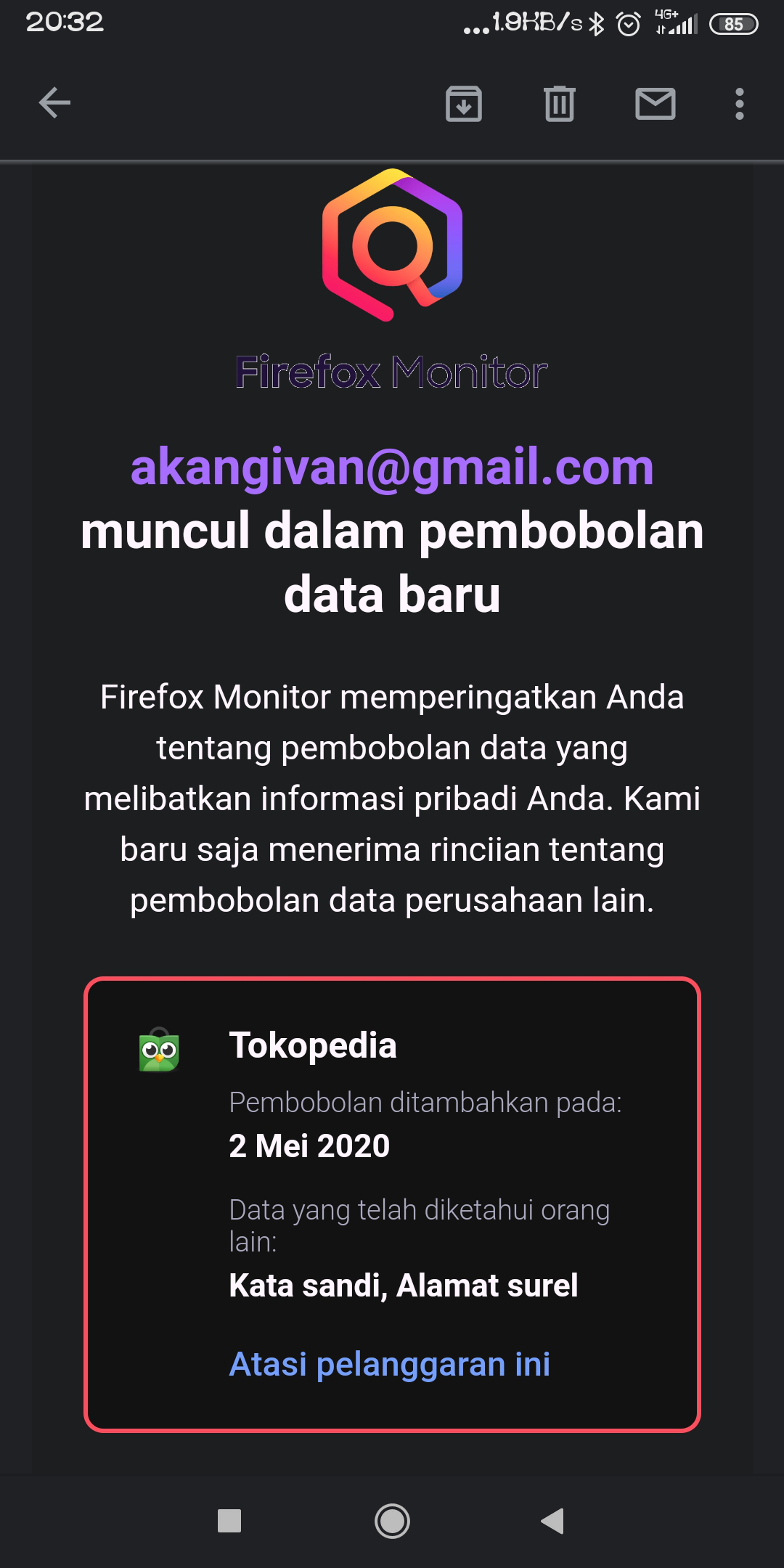I have received this email, it is malware email. Or trully valid notification from Mozilla. Any advice