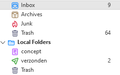 i see to trashcans one in the mail of my account and one in local folders. how can i delete one of them or combine them?