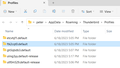 "You might want to use the profile Manager to first create the folder you want to use, then move your stuff over." I don't see anything in Profile Manager that allows me to create a folder. All it allows me to do is Create Profile, Rename Profile, and Delete Profile, and none of my old profiles show up in the list to the right. My address books and POP 3 emails are all in my old profile ftk2cqt0.default, and everything I could find on reinstalling Thunderbird said to save my old profile and then move it back into my profile folder after reinstalling, which I did. (See attached Profiles folder.) Do I have it in the right folder, and is the Profile Manager in my attached file the one I should be using?