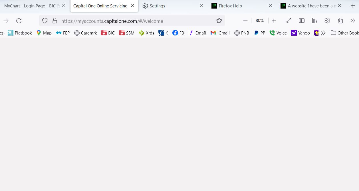 Some sites open like my email, but will not show the email contents. Others like my credit card account, FaceBook, and one of my MyChart pages will not allow me to do anything.