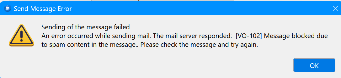 Thunderbird is censoring my outgoing email. Screenshot attached.