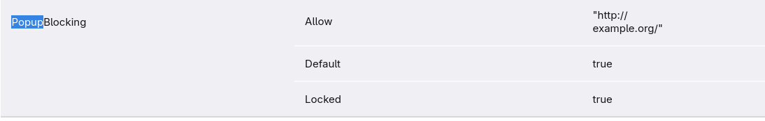 After editing `/usr/lib/firefox/distribution/policies.json` and setting `locked` to false I am able to edit pop-up settings like expected.
