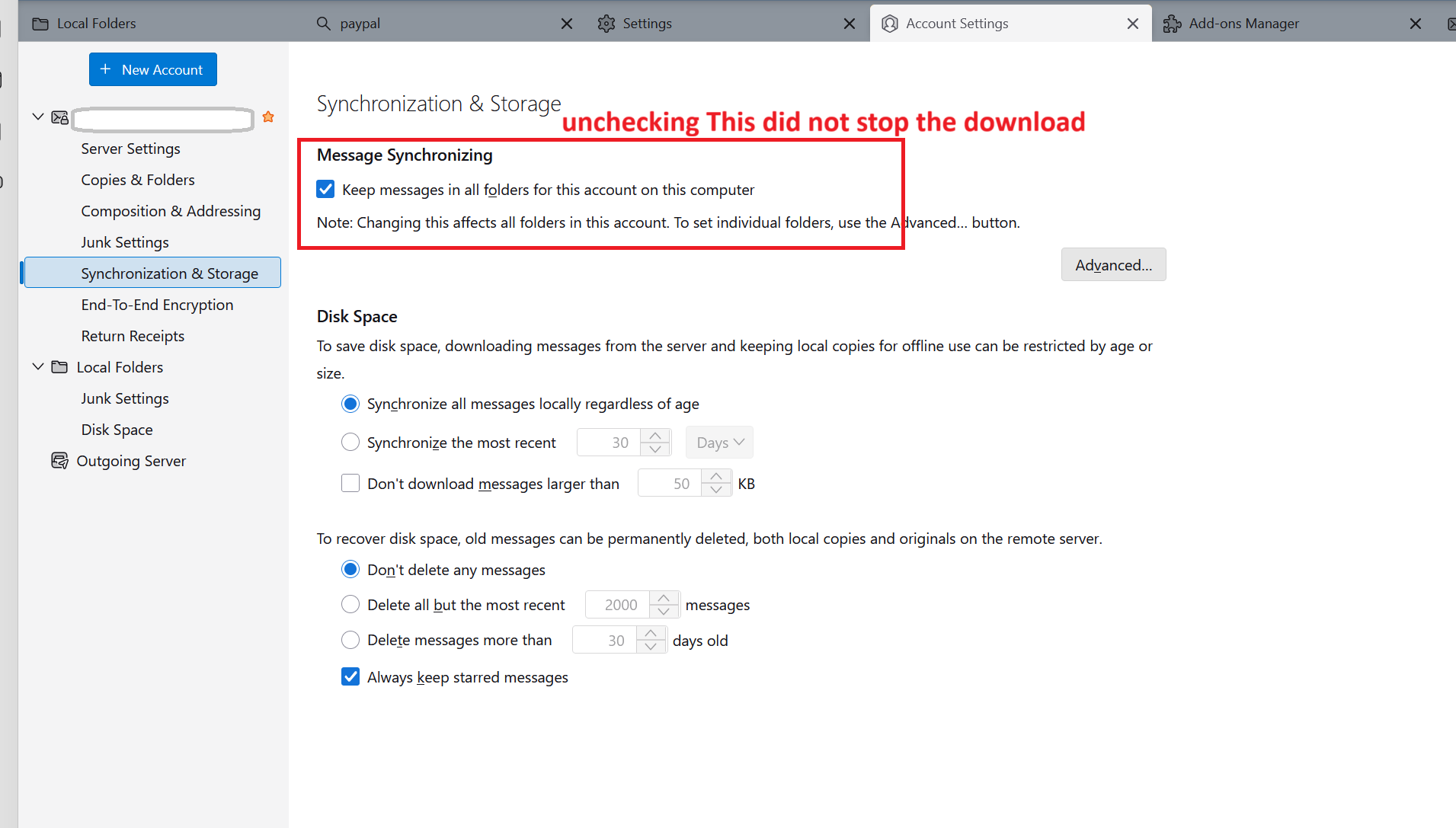 Yet ALL headers going back years still downloaded, in the thousands in my inbox folder.