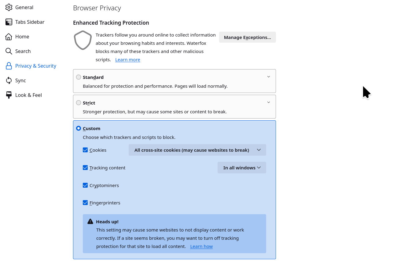 What do you have set here? see screenshot Also look at ETP. 2nd screenshot Give an example of a site you're having issues with.