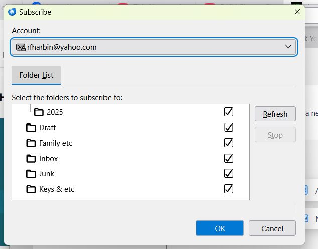 This problem started with the last update, All was OK before. I have been trying to fix it since earlier this year. I tried Yahoo help first and back then there the was Sub folder in the trash "Trash/Bulk" . They assured me that there was no folder in my Trash folder. And since it cost me five dollars to get That help, it MUST be correct :) . Somewhere since it changed to "Trash/ Spam" as my first post shows. Also I am wondering if the Thunderbird update made some changes. See the subscribe images below, Unchecking the boxes does not work. They return as checked. I did not keep thorough notes every time I tried to find a fix for my problem. The Junk folder in the Trash is the original, I added the other one and cannot remember how or where I learned how to do so as such I cannot figure how to rid of it. I'm 86 and my mind fails me occasionally. That and I keep busy with manual labor in my yard. That been working with a pick and mattock this week and summer.