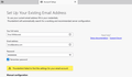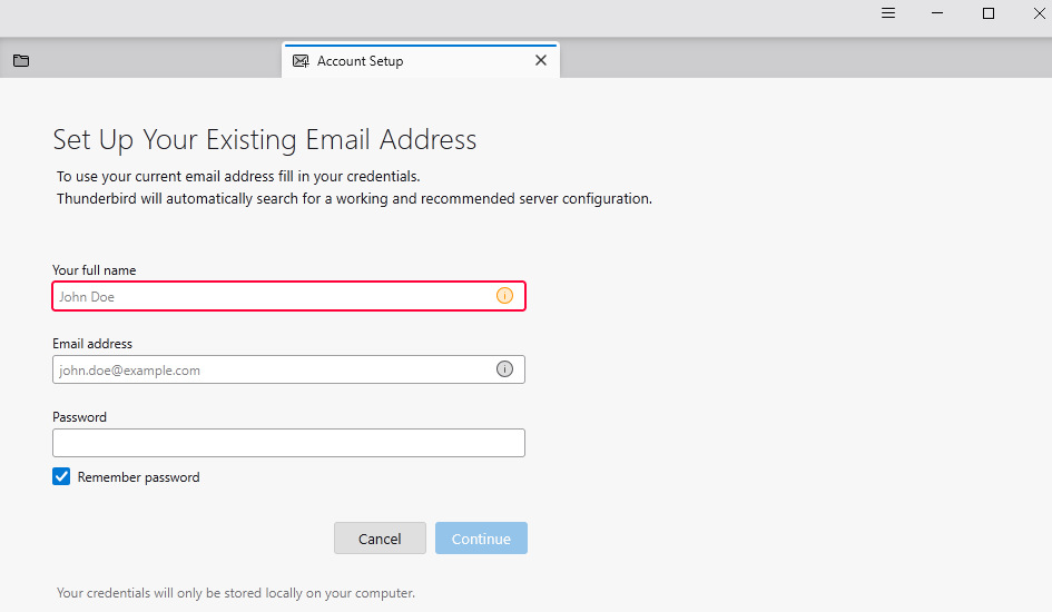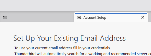 Thunderbird doesn't tell its number. I'm stuck at "Set Up Your Existing Email Address" with the above error message displayed on a yellow background (exact wording).
