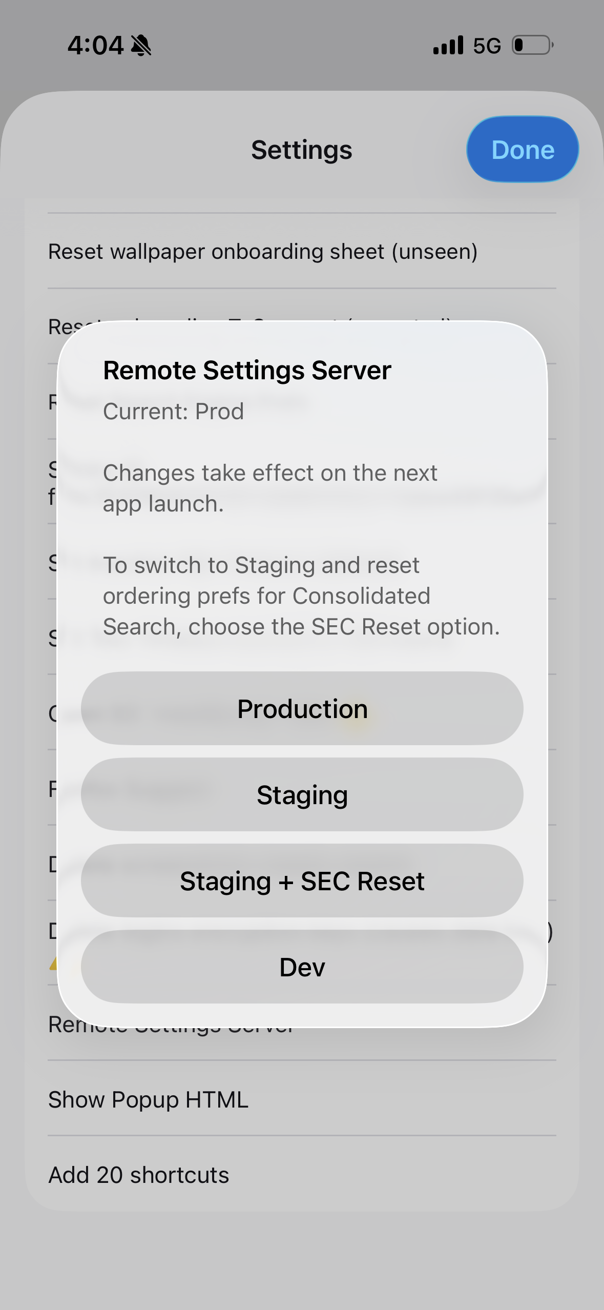 (Prod or "Production" means basically "for general public". These various other options are for developers, or support trying to help people diagnose a problem; they do not contain the right data for normal consumer use, so you should not be switching this to any other option, as is with a lot of the other "hidden settings", unless you've been instructed to during investigation of a bug or a crash.)