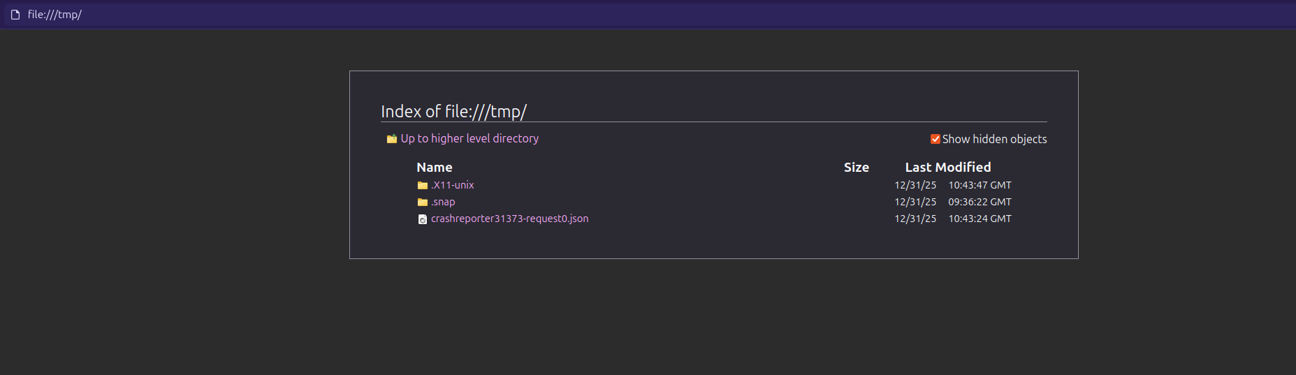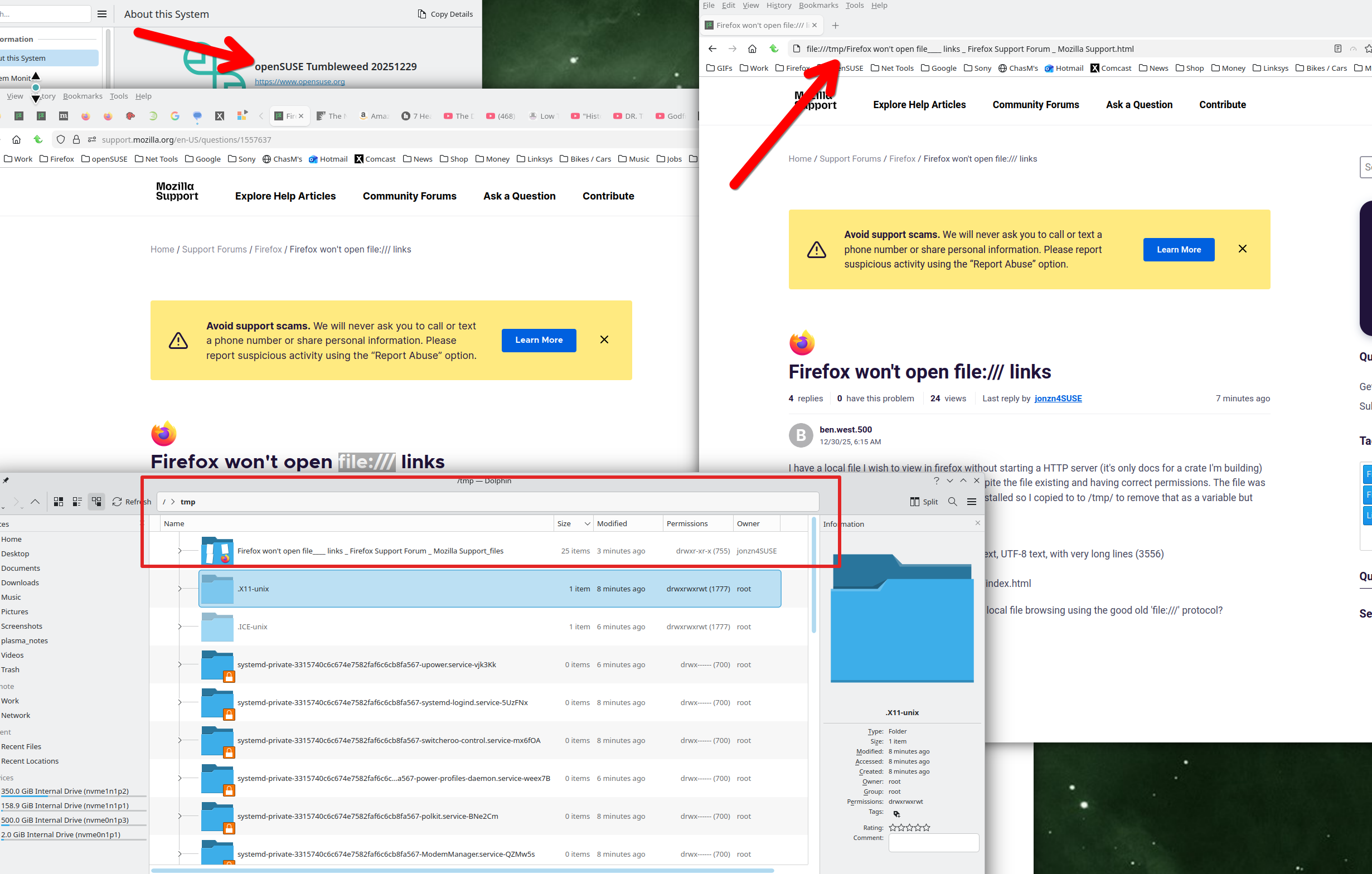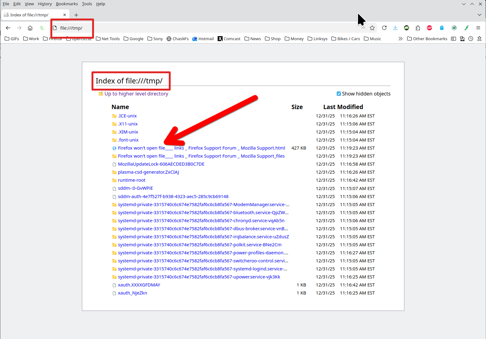 I save this page and moved it into the (on a mac) /private/tmp directory and was able to open the file. see screenshot Let me get on linux and repeat the steps and see what happens.
