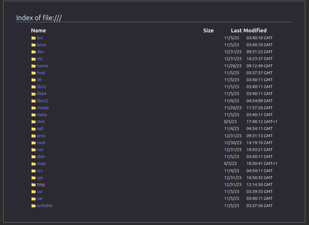 Just for S&Gs I made my index.html file and placed in /tmp. see screenshot