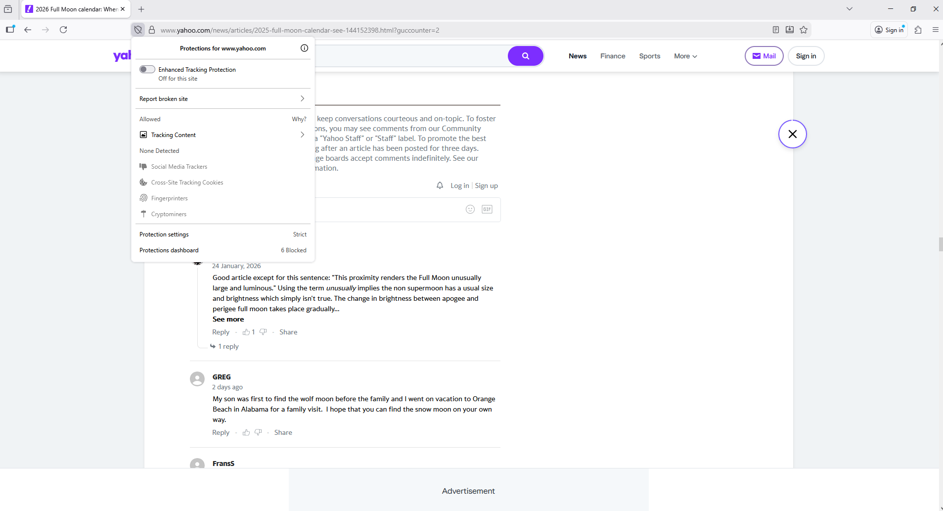 Thank you! I am looking at yahoo news and unfortunately I can't reproduce, I am able to see the comments. This is likely caused by an addon. Let's restart your Firefox on troubleshoot mode and see if it remains.